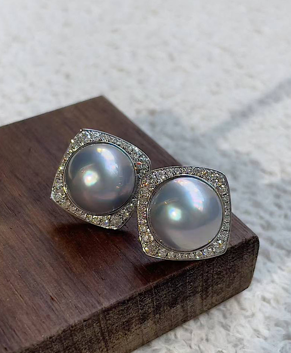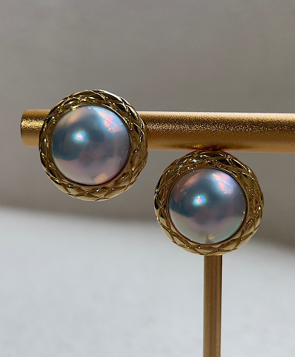 マベパールピアス 煌めく星空ブルー × K18WG ダイヤモンドフレーム