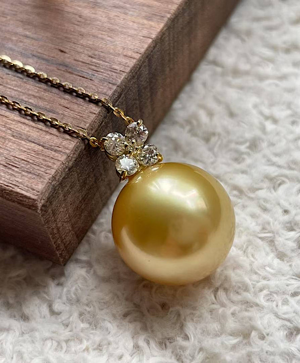 【鑑別書付き】南洋ゴールデンパール × 四つ葉のクローバー ダイヤモンドペンダントネックレス