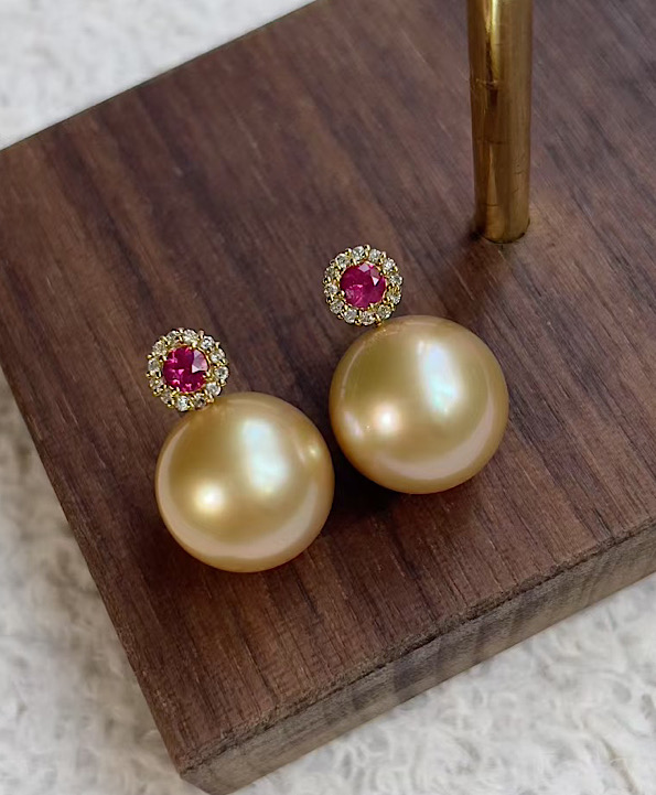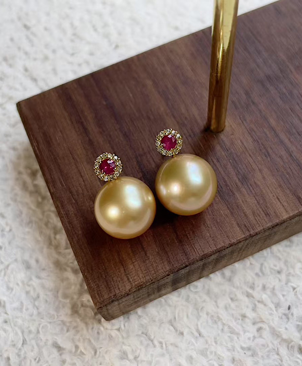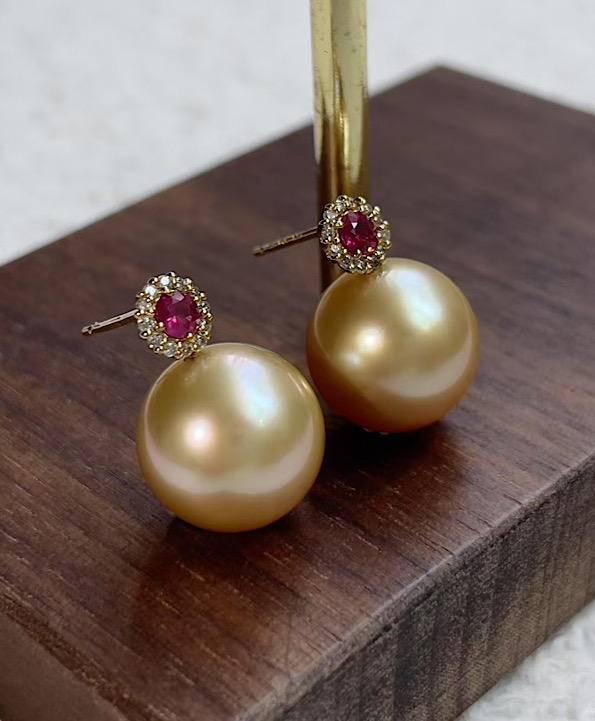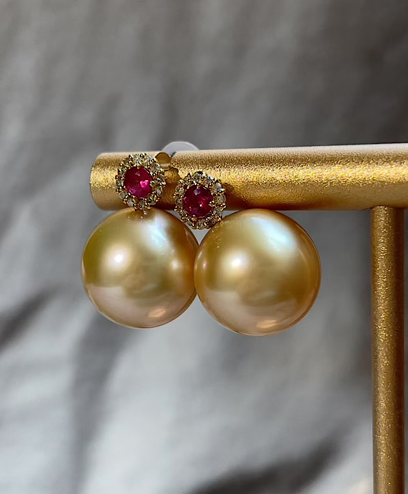 南洋ゴールデンパール×ルビー フルダイヤモンドピアス(12mm)