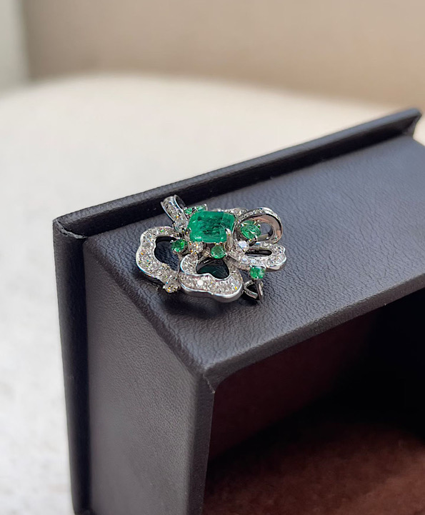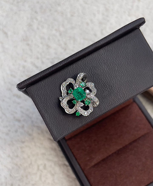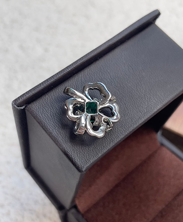 洗練されたクローバーモチーフに、厳選された天然エメラルドとダイヤモンドを組み合わせた