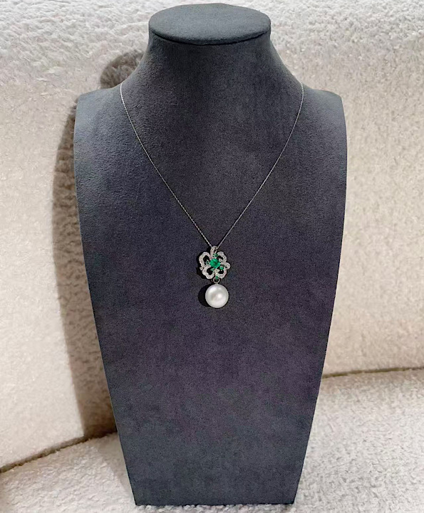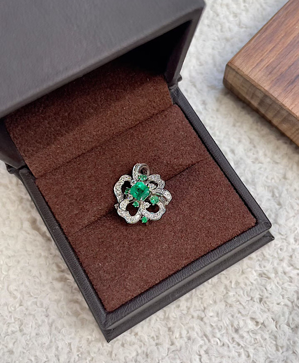 エメラルド&ダイヤモンド 流光クローバー ペンダント????