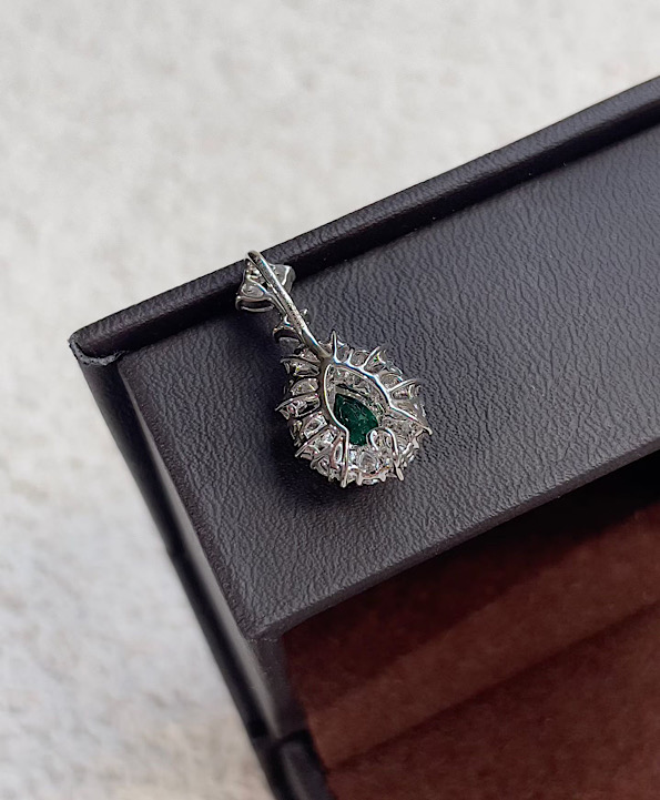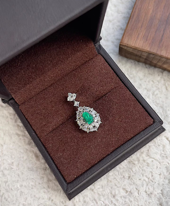 featuring rich emerald green framed by brilliant diamonds for a refined, regal presence.